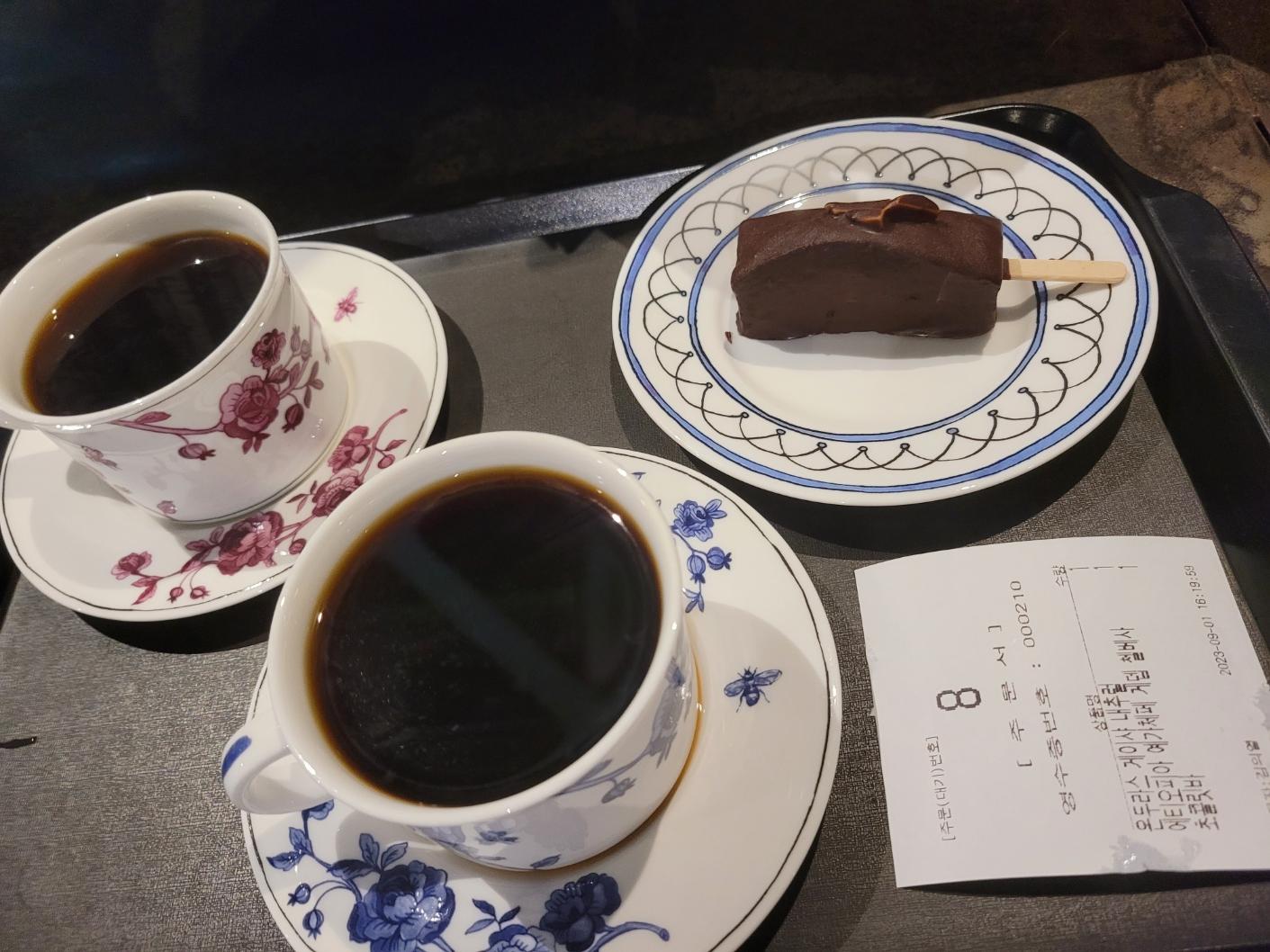 복순도가에서 통유리로 된 창을 보면 넓은 중정을 두고 마주보이는 곳이 테라로사이다. 비가 추적추적 오는 날에도 테라로사에는 사람들로 북적이는게 보였다. 테라로사는 스페셜티커피를 우리나라에서 처음 들인 곳인만큼 전국적으로 유명하다. 물론 다른 커피들도 좋겠지만, 여기서는 핸드드립 커피를 추천하고 싶다. 커피잔도 격식있게 나와 기분을 들뜨게 만들었다.