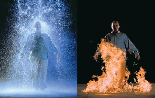 Bill Viola의 기념비적인 비디오 설치 작품인 'The Crossing'은 삶, 죽음, 변형이라는 주제에 대한 심오한 감동과 영적인 탐구를 보여줍니다. 이 작품은 1997년 광주 비엔날레에 출품한 작품으로 뛰어난 예술성과 전문 기술을 통해 시간에 대한 우리의 인식에 도전하고 존재에 대한 신비를 생각하게 합니다. 어두운 공간에 두 개의 대형 스크린이 설치되어 관객들을 한 순간에 몰입시키며 각각의 화면에는 물과 불에 관한 이미지를 강하게 전달합니다. 한 남자가 천천히 다가오는데 위에서 물이 한 방울씩 떨어지더니 급기야 폭포수처럼 쏟아지는 장면이 계속되며 소멸합니다. 다른 한쪽의 화면에서도 마찬가지로 한 남자가 다가오며 멈춰서는 순간 발밑에서 화염이 휘몰아치는 장면이 전개됩니다. 다채널 비디오와 슬로우 모션 영화 촬영법을 사용하여 물과 불의 무게감, 저항 및 유동성을 강조하면서 인물이 움직이는 모든 세부 사항을 목격하게 합니다. 또한 영상에는 물소리, 숨소리 등 미묘한 음향효과를 조성하여 깊은 사색적인 분위기를 연출하고 보는 사람이 마치 그 속에 함께 존재하는 듯한 현장감과 몰입감을 증폭시킵니다. 시간을 연장시켜 느려진 움직임은 우리의 전통적인 시간 감각을 파괴하여 명상적이고 초월된 시공간을 만들어 줍니다. 그는 우리가 감각적 경험에 몰입할 수 있게 하여 우리 자신의 존재와 일시적인 시간의 본질에 대한 깊은 사색을 하게 하며 작품에 등장하는 인물이 보여주는 투쟁과 인내는 우리 자신의 공감, 연약함, 초월에 대한 보편적인 인간의 열망을 불러일으킵니다.