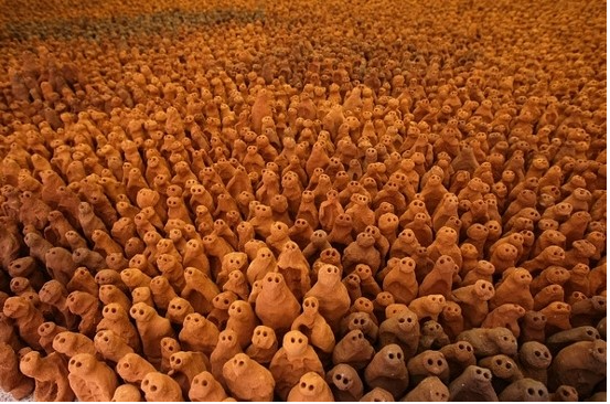 중국 광저우에서 <아시아 필드>(2003)를 제작할 때는 12,000개의 소형 점토 인물상들을 만들기 위해 300명의 지역민들과 함께 작업했다. 이 연작의 작품들은 제각각 다르며, 유일한 공통점이라고는 그 재료와 서툰 디자인뿐이다. 그는 이 작업이 한 명의 예술가의 작품이 아니라 모두의 작품이라고 이야기 했다. 짙은 붉은색으로 유명한 광동 지역의 진흙을 사용한 이 작품은 대략의 세계인구를 만들기 위해 노력한 것이었다. 하나씩 자세히 들여다보면 모두 다르지만, 모두 같기도 한 이 테라코타 조각들은 마치 주인들의 자화상 같기도 하고, 지구인들의 자화상 같기도 하다. 그는 작품을 통해 우리 모두는 결국 서로 어떤 식으로든 영향을 미친다는 것을 말해 주는 것 같다.