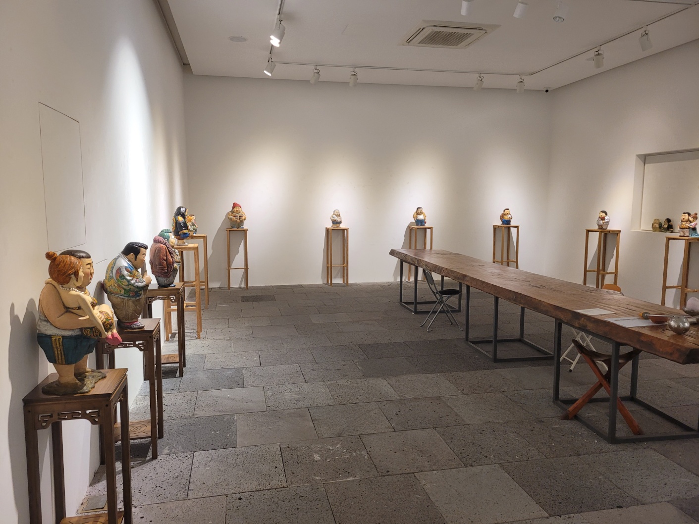 김원근 작가의 조각은 요즘 아트페어를 가면 항상 볼 수 있다. 그만큼 인기가 많다는 것을 의미한다. 작품의 인물은 얼핏보면 영화배우 마동석 같은 이미지가 있는데 겉으로 보기에는 우락부락한 건달 형님? 을 연상케 하지만, 내면은 여리고 섬세한 면모가 있음을 표정이나 인물과 함께하는 소품을 통해 엿볼 수 있다. 작가 자신을 투영하기라도 한 듯 위트있고 유머러스한 감각이 잘 반영되어 관람자의 미소를 자아내게 한다. 전시기간은 2023. 9. 6~10. 29일 까지고 매주 월, 화는 휴관이다.
