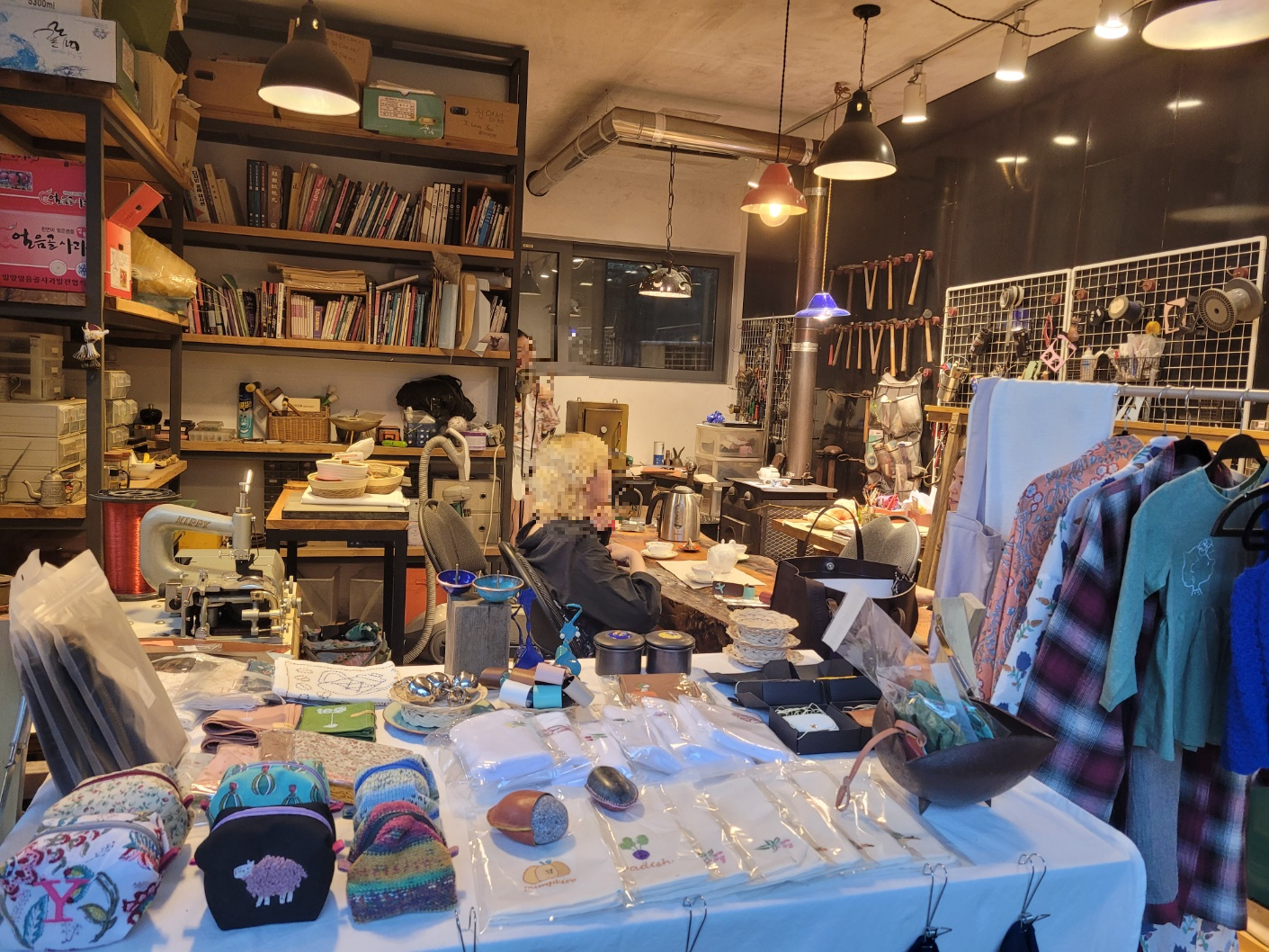 갤러리 희는 매주 토요일마다 플리마켓이 열린다. 오늘은 비가와서 지하 공방에 가판대가 설치되어 있다. 공방에서는 가죽제품과 여러가지 수공예품을 만들고, 원데이 클래스를 진행하기도 하며 이것을 판매하기도 한다. 원데이 클래스는 주로 가죽공예를 하고 가죽 소품을 직접 만들어 가져갈 수 있다. 공방에 있는 물건 하나하나가 취향을 자극하는 작품들이라...오늘은 나도 멋진 로브를 득템하였다. 플리마켓과 원데이 클래스는 갤러리 희에 직접 문의하여 참여할 수 있다.