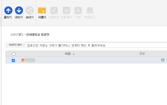 다음은 자료를 올리시면 되는데요. 주의해야 할 사항은 한번 올린자료는 삭제가 안되니 미리 올리실 자료를 검토하고 파일이 어느 폴더에 있는지도 미리 확인하신 후 올리셔야 합니다.