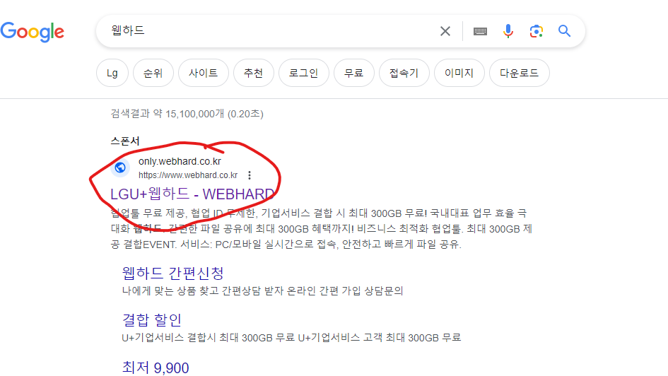 먼저 "웹하드"를 검색해보겠습니다.