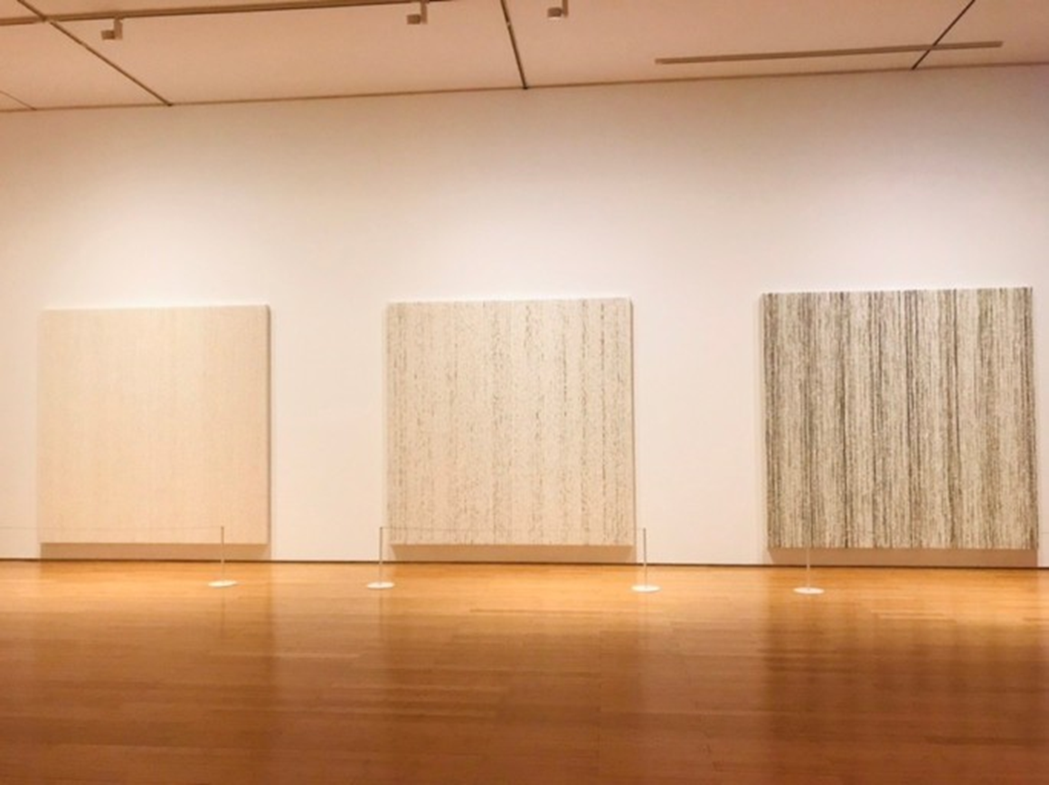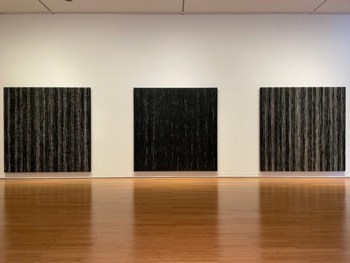 “먹색은 단순한 검은색이 아닙니다. 눈을 감았을 때 편안한 상태의 침묵, 고요 등을 상징하는 색이지요“ 이런 측면에서 그녀는 이 색을 가장 인간다우면서도 자연에 가까운 색이라고 말하고 있다. 검은색처럼 보이지만 그 속에는 삶과 죽음, 해와 달 등 인간을 포함한 자연의 음양에 관계한 이치가 모두 함축돼 있다.