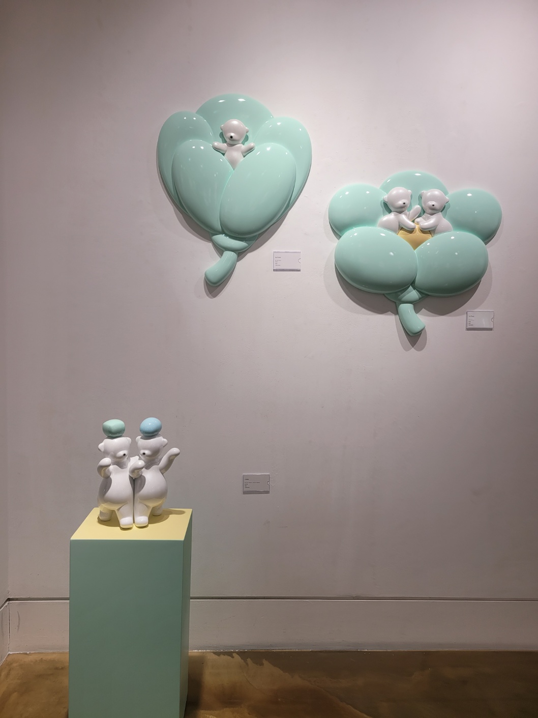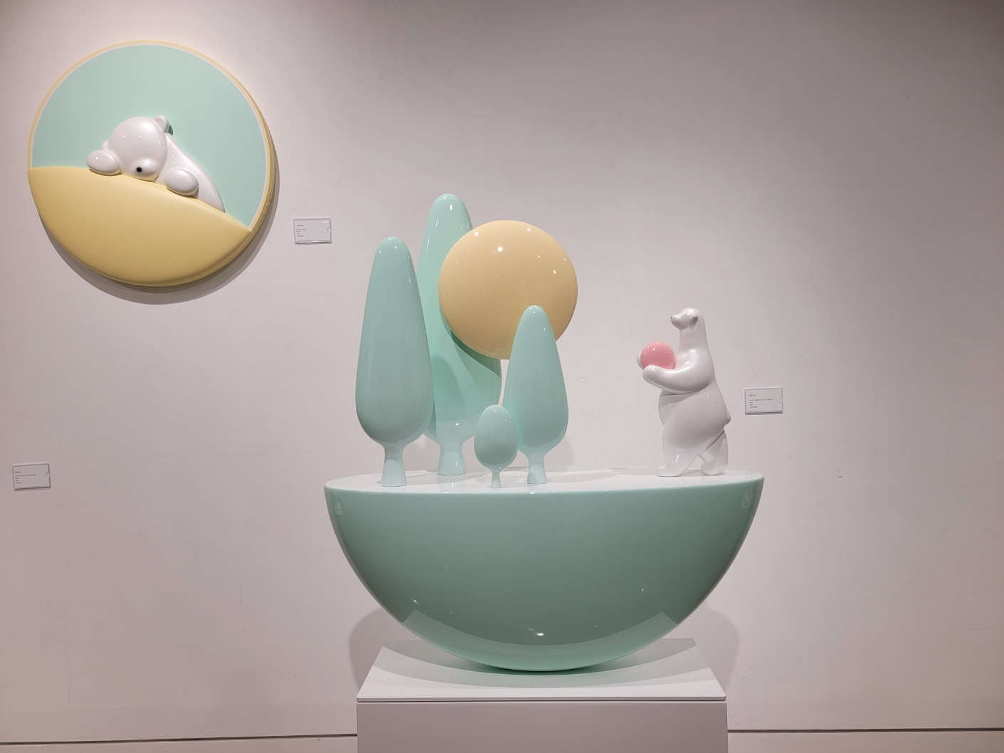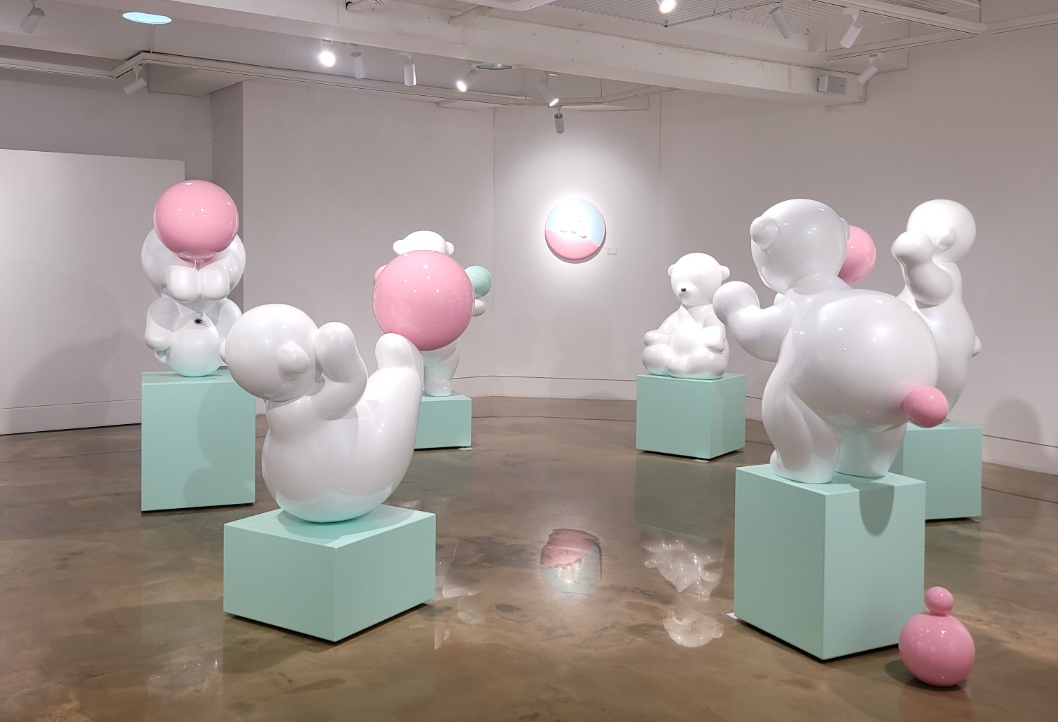 북극곰 시리즈에 자주 등장하는 아이스크림이라던지 장난감 같은 조형과 귀엽고 동화적인 캐릭터 오브제는 팝아트적인 이미지를 연상시키지만, 그 이면에는 환경 문제라던가 인간의 삶과 외로움, 소비사회에 대한 비판적인 시선이 담겨져 있어 우리에게 불편하고 무거운 주제를 해학적으로 환기시켜 준다.