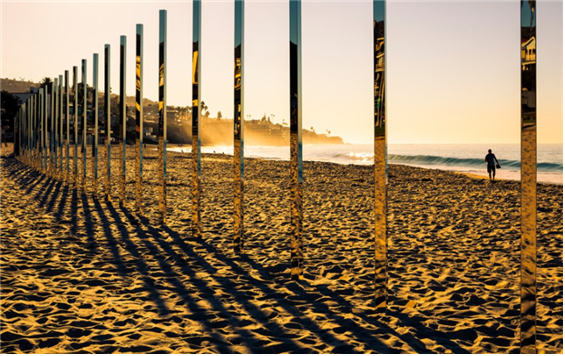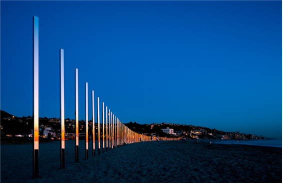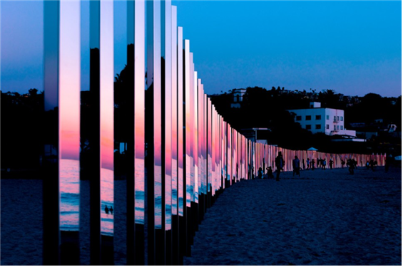 라구나 비치에 거울로 된 기둥 모양의 조형물이 설치되어 해변의 파도와 석양, 유유히 지나는 사람들이 거울에 비치면서 또 하나의 공간을 형성한다. 자연이 가시적으로 우리에게 다가오는 모습과는 다른 인공물에 비추어진 갇힌 공간이 제3의 세계를 연출하는 느낌으로 다가와 특별한 경관을 보여주고 있다.