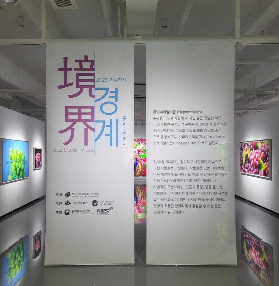 금정문화회관 금샘미술관에서는 기획전시<경계>전이 열리고 있다. 정교하고 사실적인 기법으로 그린 작품들로 인물과 풍경, 정물 등 작가의 다양한 시선을 보여주고 있다. 참여작가는 김대연, 김수미, 김시현, 김영성, 안정환, 이창효, 이흠, 정중원의 총 8명의 작가들로 구성되었고 한국 극사실회화의 현황과 흐름을 한자리에서 감상할 수 있는 좋은 기회가 되는 것 같다.