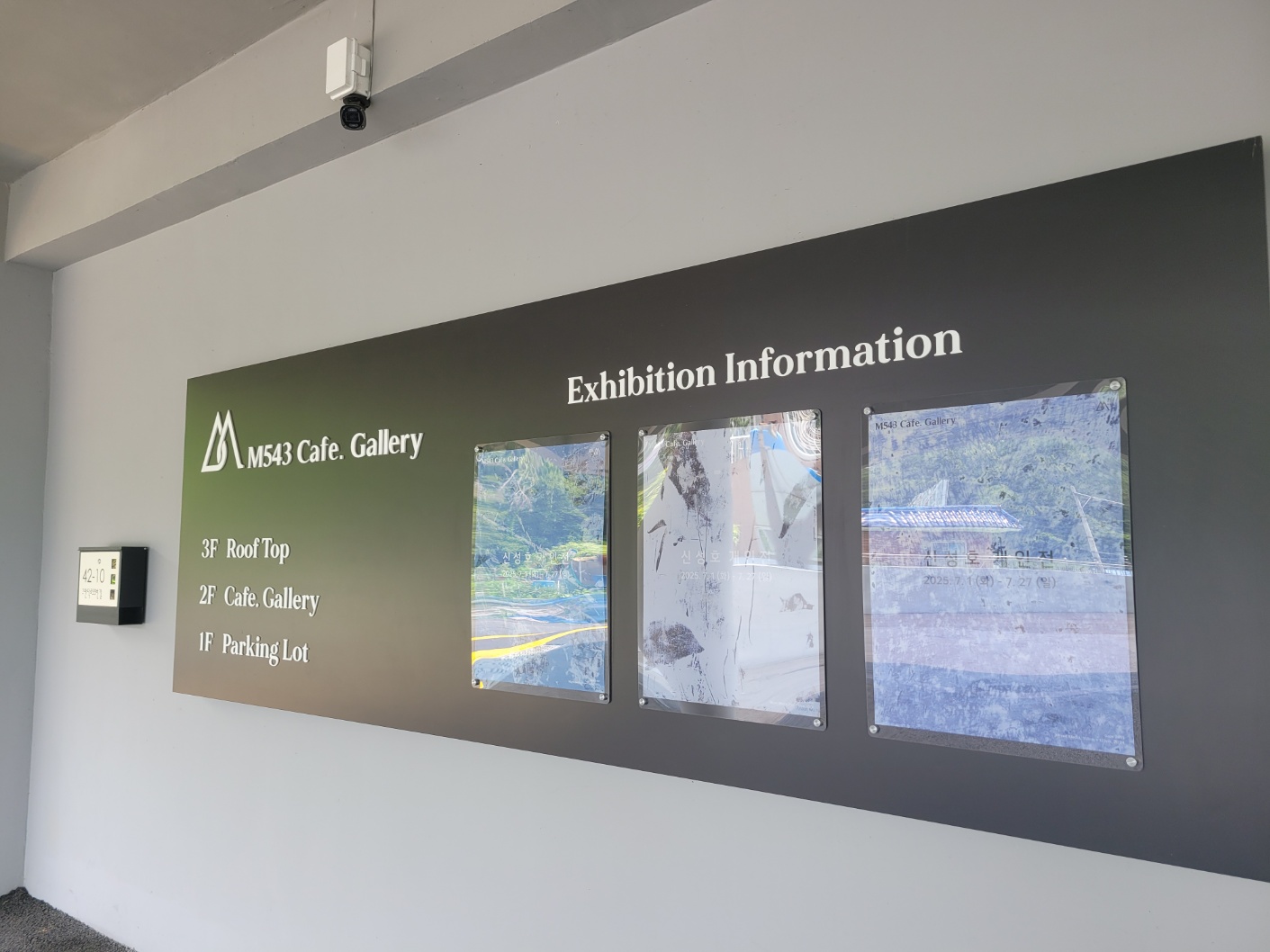 주차장에서 카페로 올라가는 길에 전시 포스터가 있어서 이달의 전시 작가가 누구인지 쉽게 알 수 있었다.