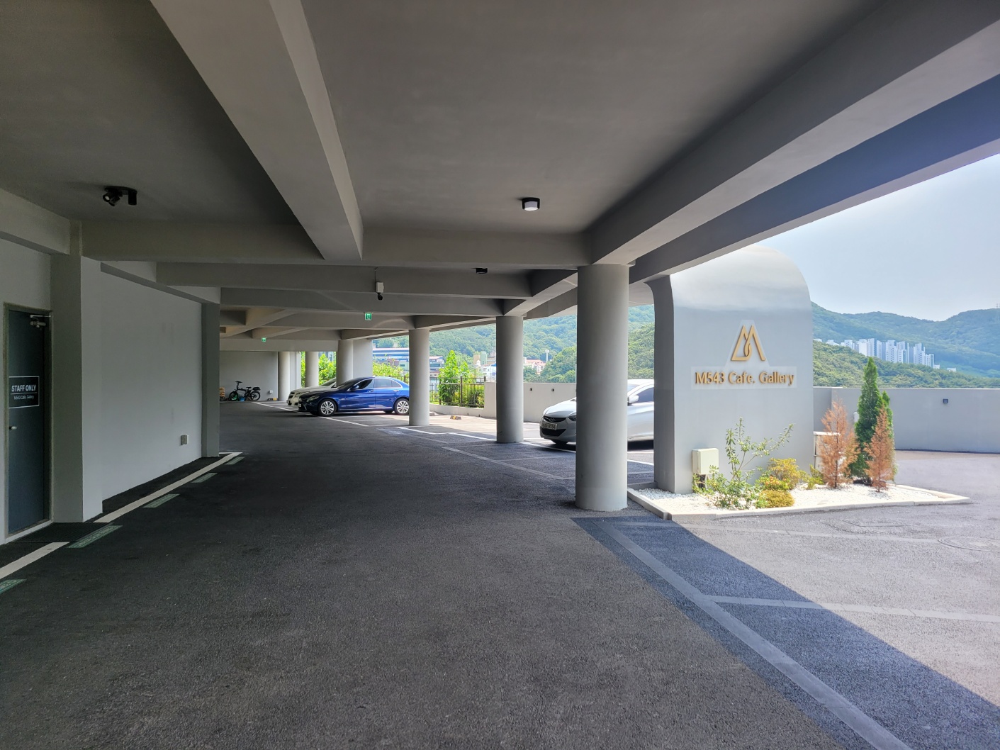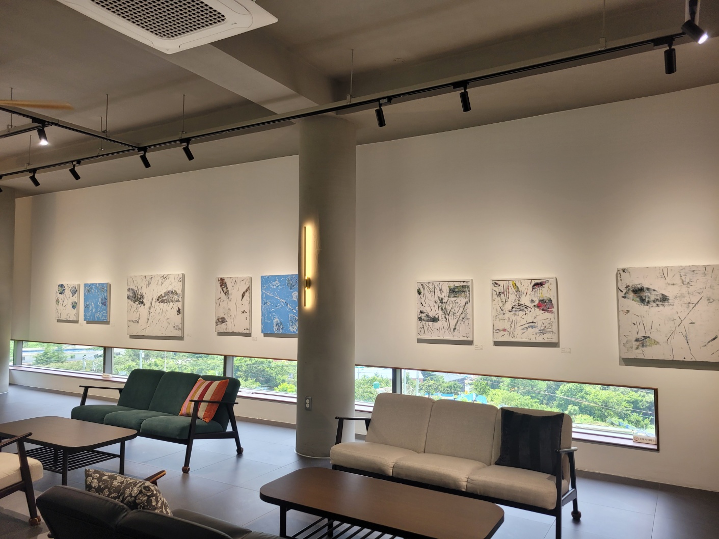 우선 넓은 주차장이 장점이었다. 부산 시내 어느 갤러리를 가도 항상 주차가 문제였는데 이곳은 카페를 같이 운영하고 있는 공간이라 주차하기가 편리했다.